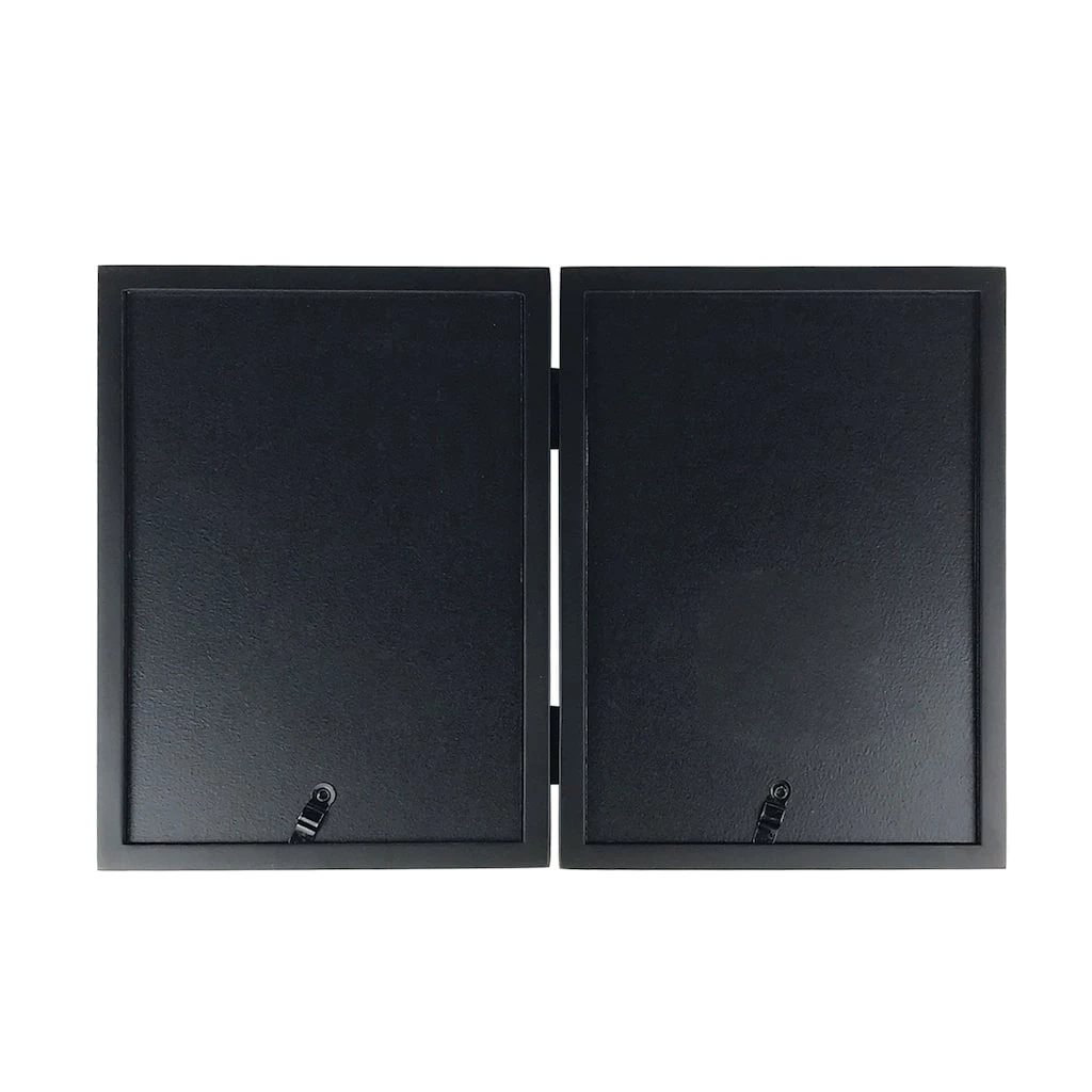 Show off a pair of family photographs or treasured memories with this classic hinged frame. Two frames are hinged together to create an eye-catching photo display for your desk or tabletop.