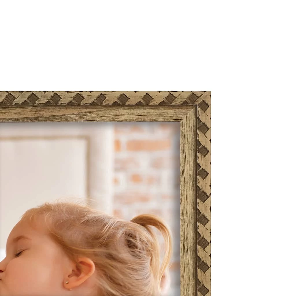 This weathered wooden frame with a braid-patterned edge will add a lovely rustic touch to your dΓ©cor. Display a treasured family photo or drawing on your mantelpiece paired with other frames and a ceramic vase of bright flowers.