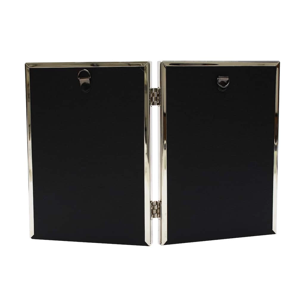 Metal frame looks great on a tabletop or desk. Display two photos side-by-side in this hinged frame.