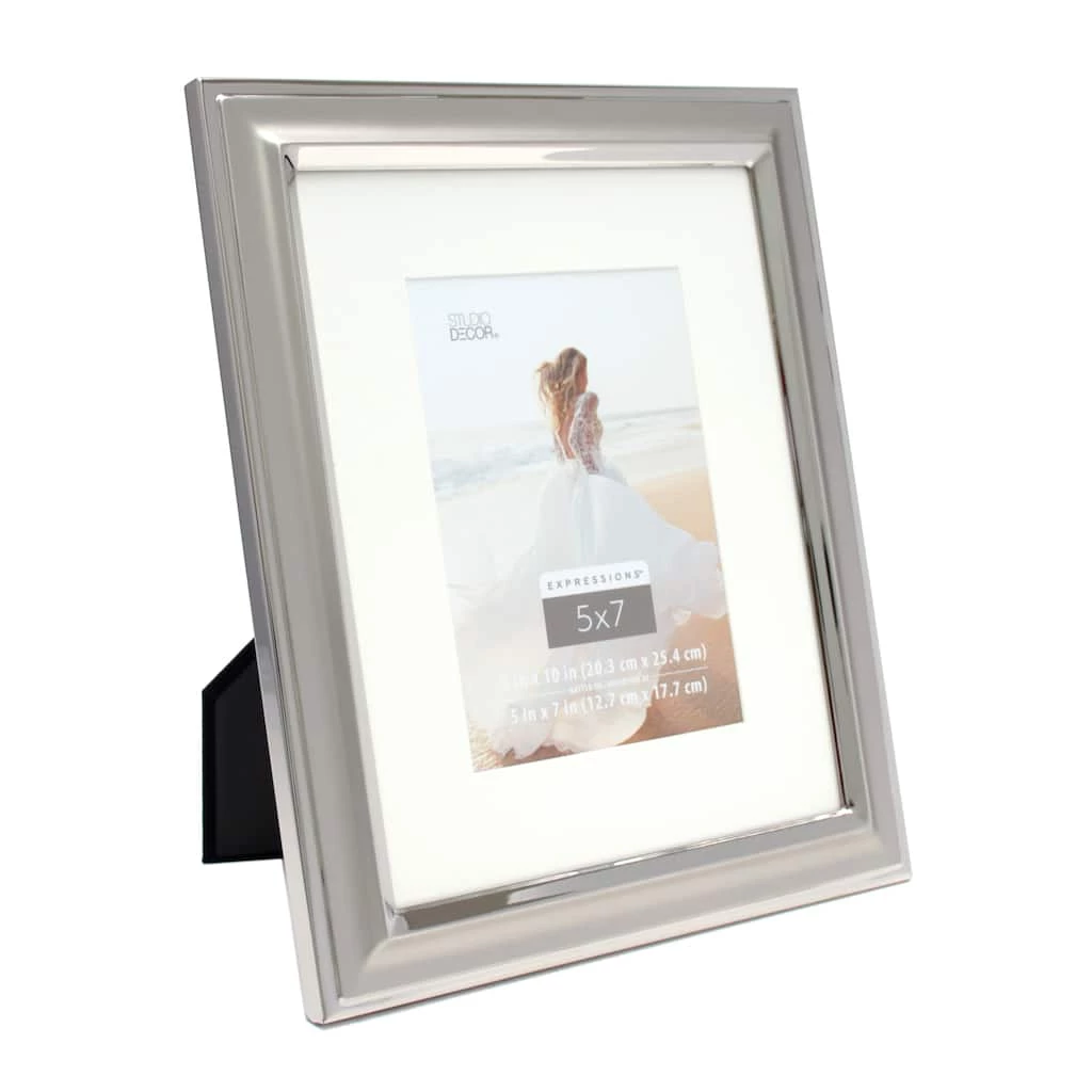 Pretty metal frame has shiny and brush silver accents. It looks great on a table or desk.