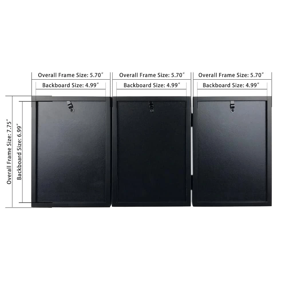 Show off a trio of family photographs. Three black frames are hinged together to create an eye-catching photo display for your desk or tabletop.