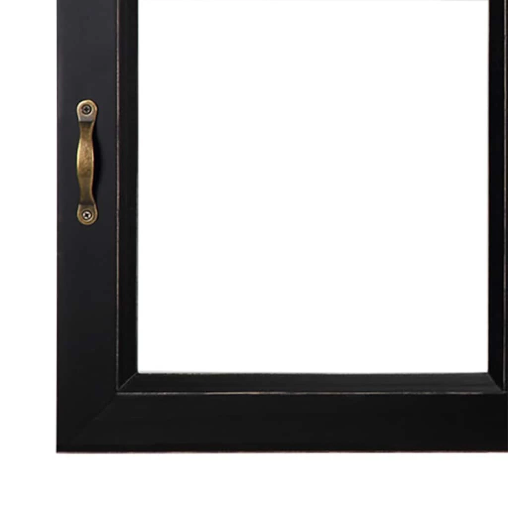 - Distressed black finish with antique metal accents