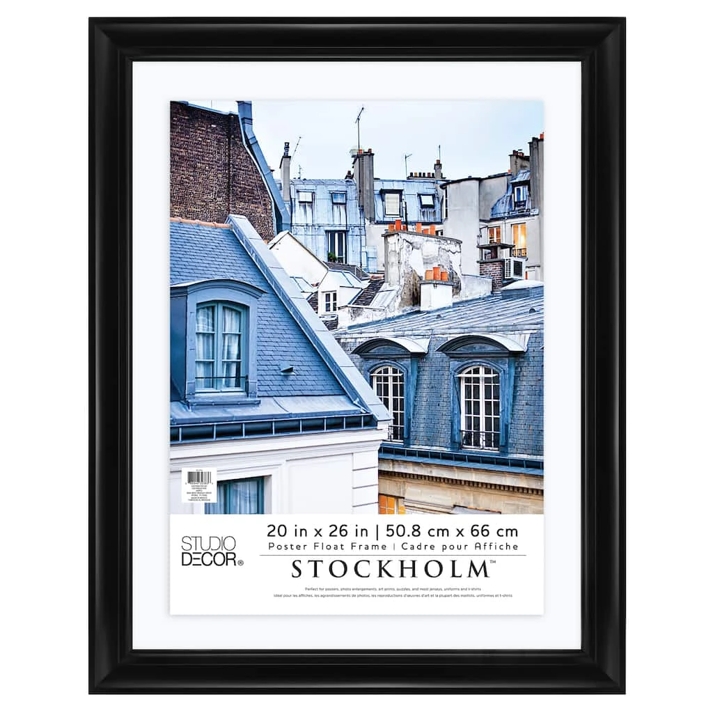 A float frame is great for displaying any flat item that is equally interesting from the front and the back. Plus, it looks great hung on a colorful wall. Use this black frame to showcase a poster, over-sized photo, artwork, sports jersey or t-shirt.