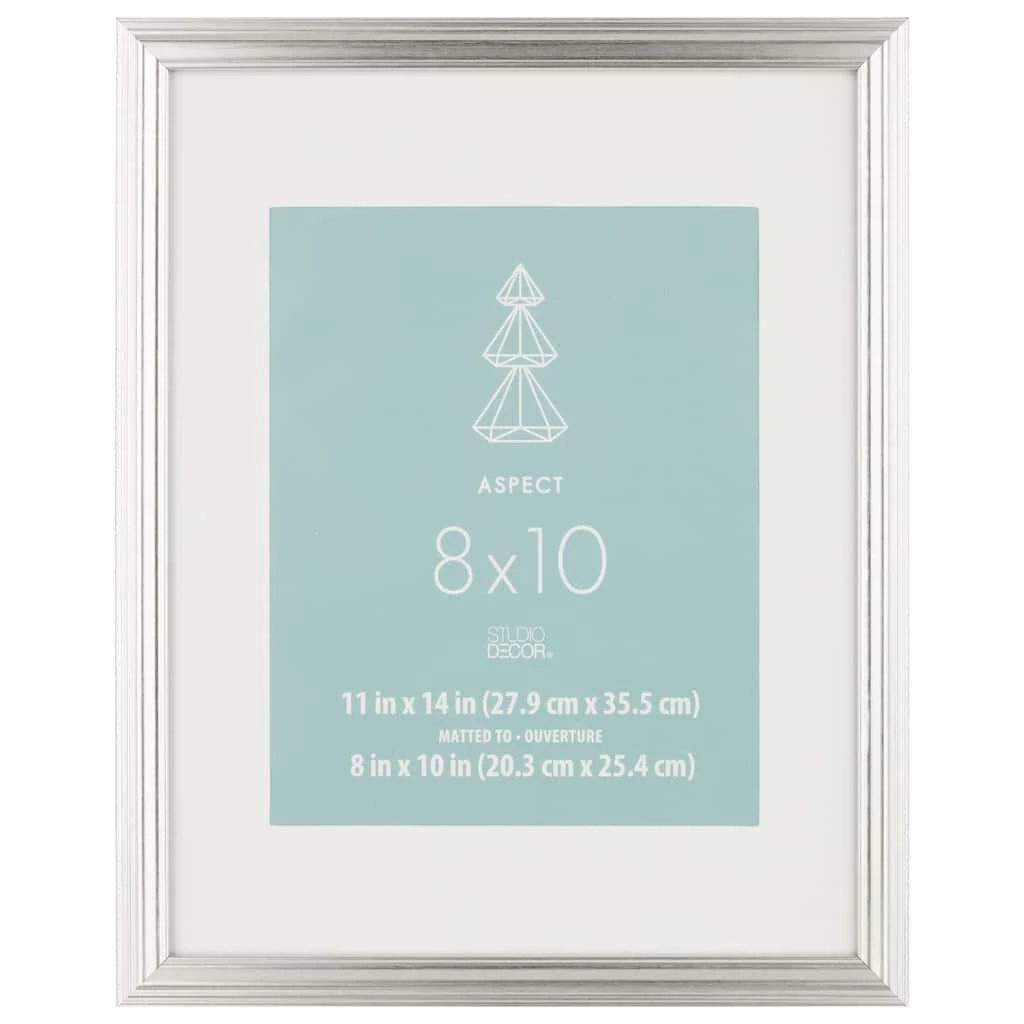 Quickly and easily preserve a moment in time with this narrow silver colored frame with mat from Aspect collection by Studio DΓ©cor. Present a photograph of your loved ones or a cherished piece of artwork in this uniquely designed picture frame. A thick layer of glass protects your display.