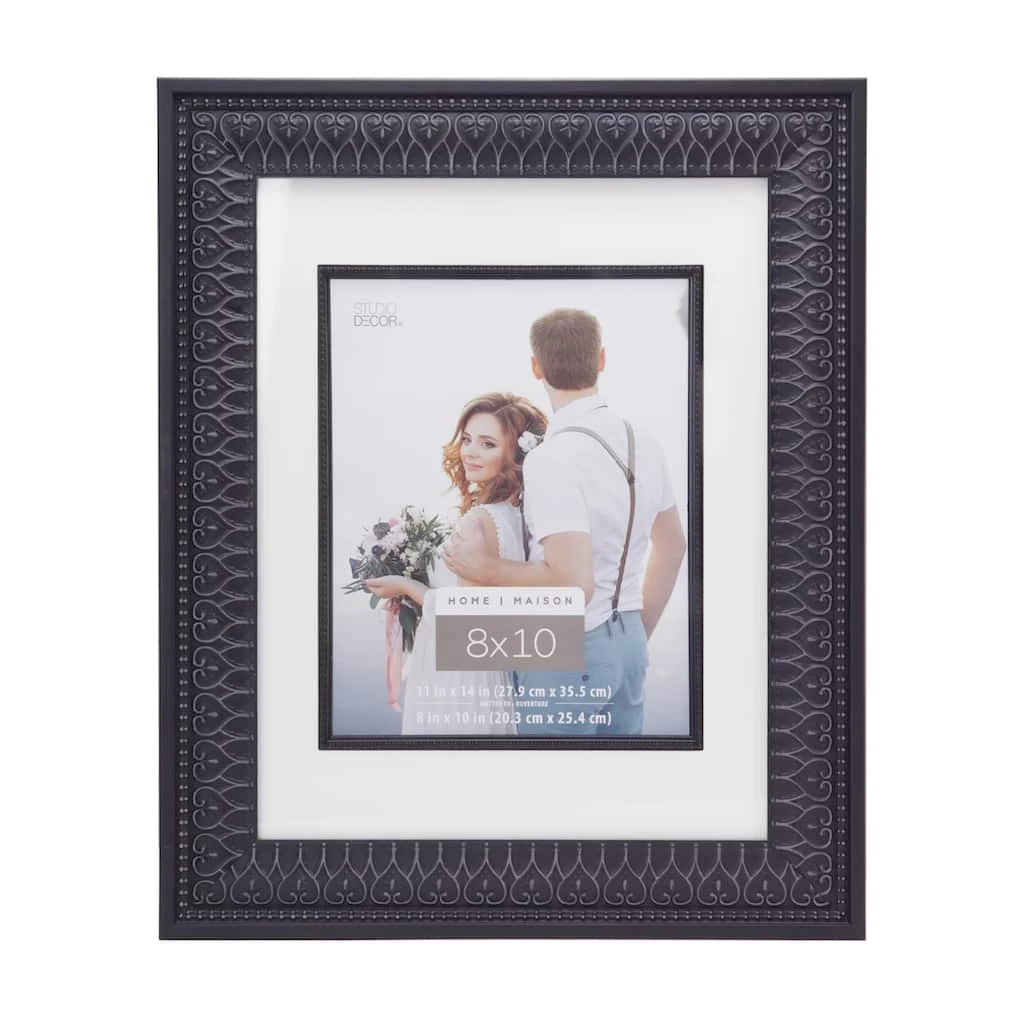 Add a cherished memory in this decorative frame. This lovely frame features a design of hearts surrounding the photo you love.