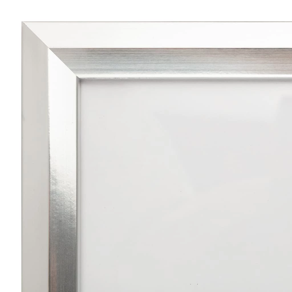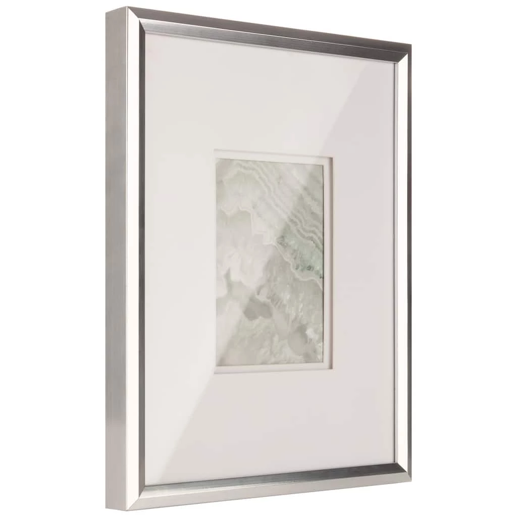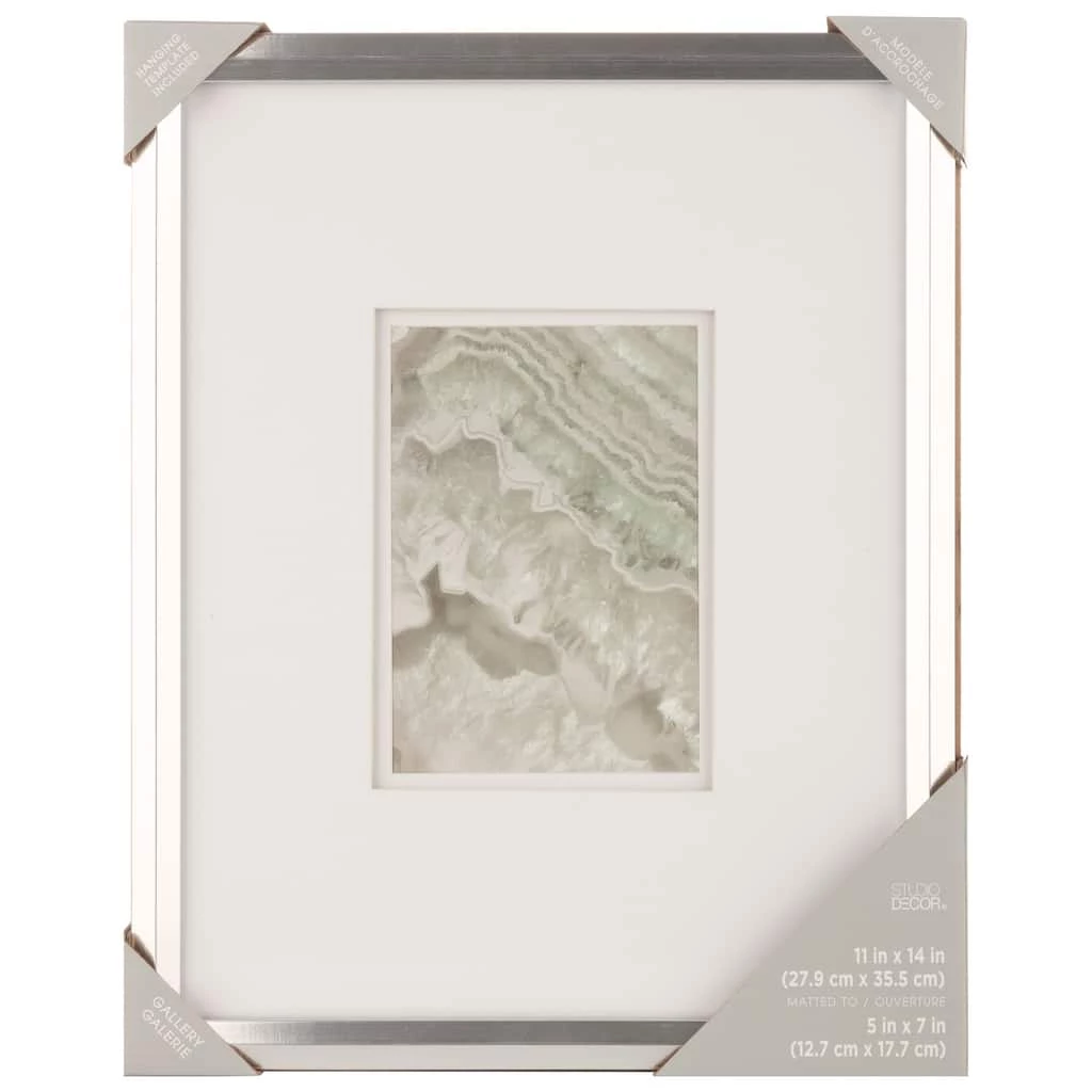 Quickly and easily preserve a moment in time with this metallic silver colored frame from the Gallery collection by Studio DΓ©cor. Present a photograph of your loved ones or exhibit a cherished piece of artwork in this uniquely designed picture frame. A thick layer of glass protects your display.